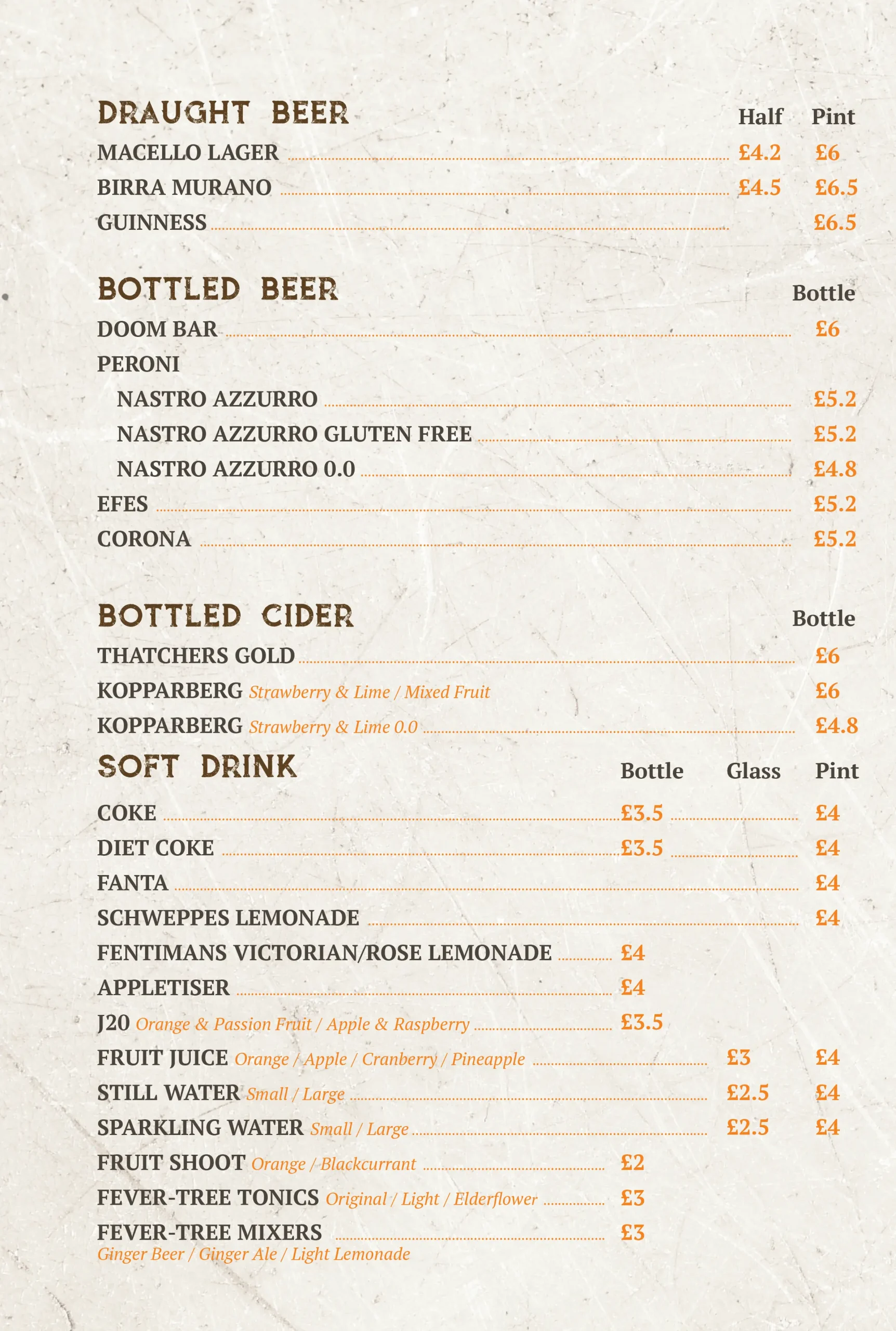 Drinks Menu